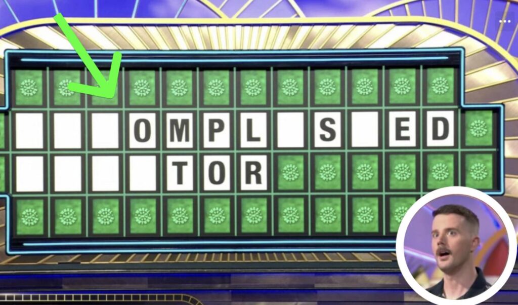 In the Bonus Round, MacDonald, who brought his husband Andrew as his guest, selected “Person” as the puzzle category. After being given the standard letters R, S, T, L, N, and E, he chose D, M, P, and O. The resulting puzzle: “_ _ _OMPL_S_ED _ _ _ _TOR.”