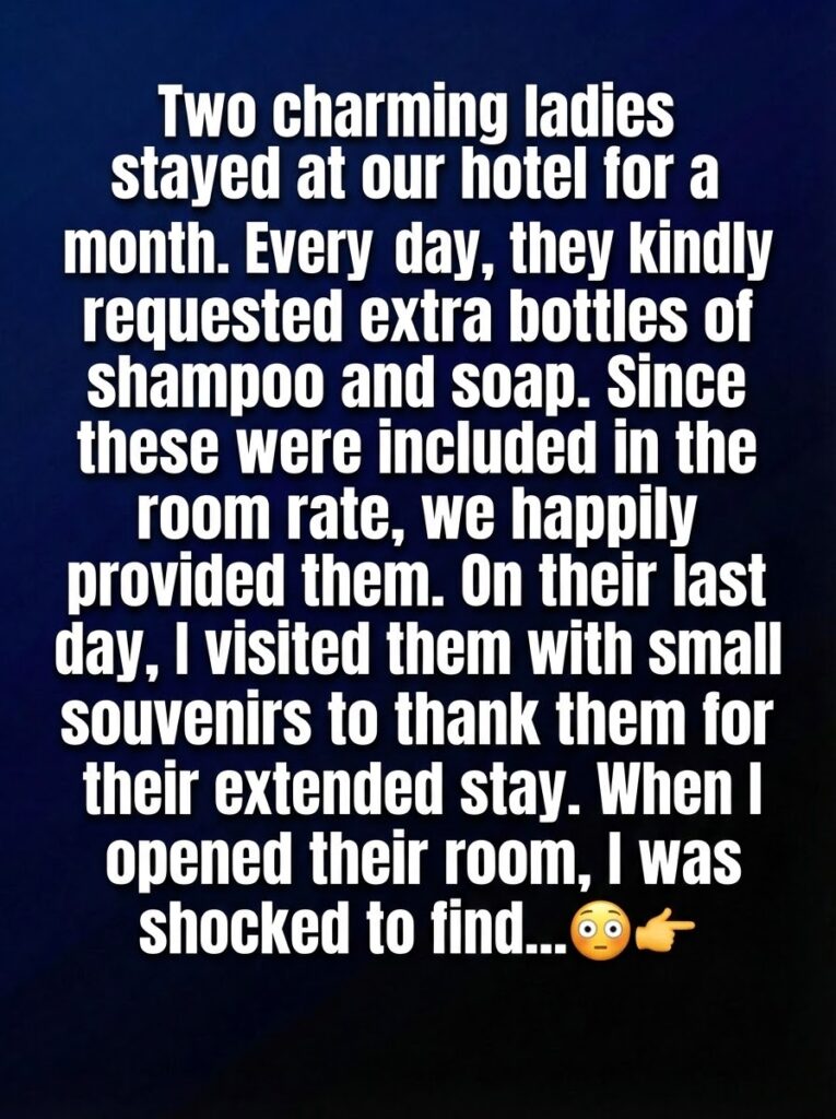 From the first night, they blended into the rhythm of the hotel as if they belonged there. Every morning, they greeted the staff by name, asked how the night shift had gone, and lingered at the coffee station chatting quietly. They requested extra shampoo and soap with polite smiles, never demanding, never entitled. Their room package included unlimited toiletries, so Lina never gave the requests a second thought. The women always thanked her warmly, as if the items were gifts rather than amenities.