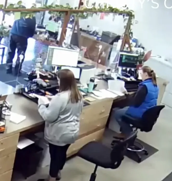 Five days after the murders, Kohberger appeared on surveillance cameras at the Pullman, Washington DMV. In the footage, he walks casually into the office, seemingly relaxed, dressed in everyday attire. He approaches the counter to transfer the license plate of his white Hyundai Elantra — a vehicle that would later become a key piece of evidence — from Pennsylvania to Washington.