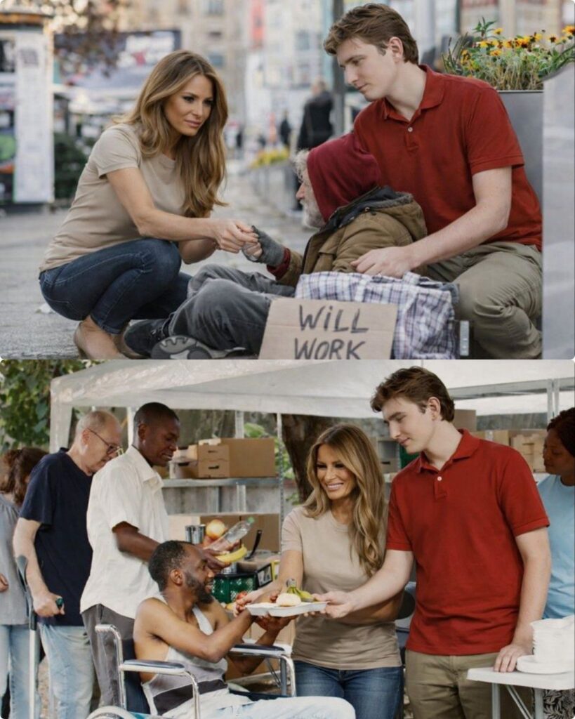 Many of the individuals present, who had experienced years of hardship and neglect, spoke later about the effect of the visit. Several recounted how even a few minutes of Melania’s attention made them feel truly seen, their struggles acknowledged, and their worth reaffirmed. Parents of children living on the streets noted the way Melania and Barron treated every recipient with dignity, ensuring that no one felt overlooked or invisible. “It wasn’t about the food,” one witness later remarked, “It was about the way she made you feel — that you mattered, that your story was recognized.”